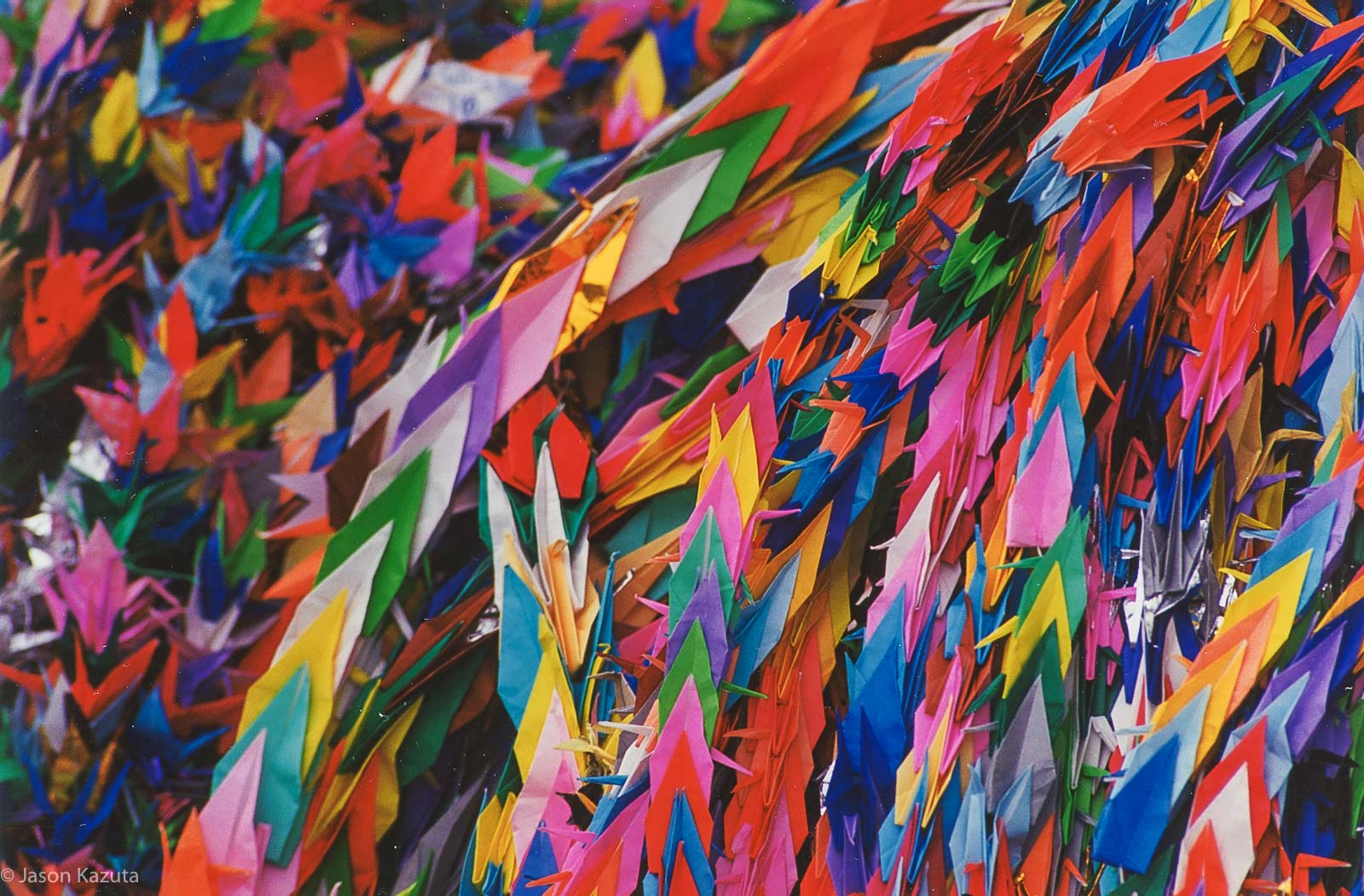 The Children’s Peace Monument is a statue dedicated to the memory of the children who died as a result of the bombing. The statue is of a girl with outstretched arms with a folded paper crane rising above her. The statue is based on the true story of Sadako Sasaki (佐々木禎子, Sasaki Sadako), a young girl who died from radiation from the bomb. She is known for folding over 1,000 paper cranes in response to a Japanese legend. To this day, people (mostly children) from around the world fold cranes and send them to Hiroshima where they are placed near the statue. The statue has a continuously replenished collection of folded cranes nearby. – Wikipedia