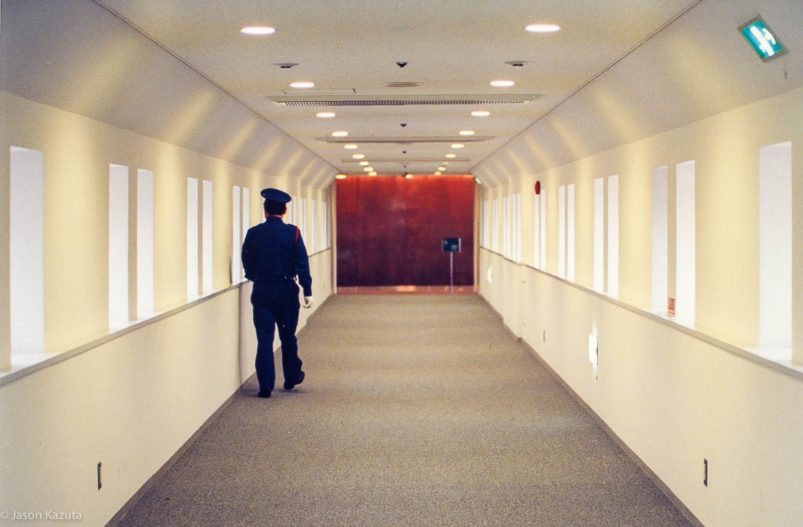 A security guard patrolling inside the Hiroshima Peace Memorial Musuem.