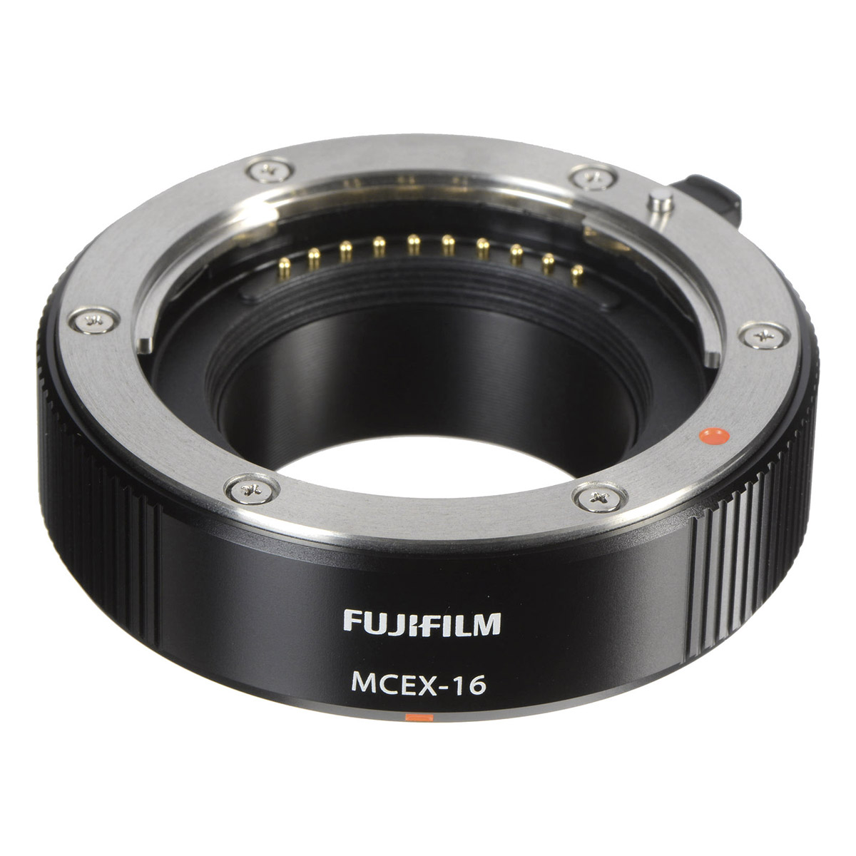 The MC-EX16 Extension Tube is 16mm wide and has full electrical contacts to maintain AF and AE when used in conjunction with Fujinon X-System lenses. This extension tube will allow for closer focusing than any given lens will on its own. For a full chart, see: X System Lens + Extension Tube Chart