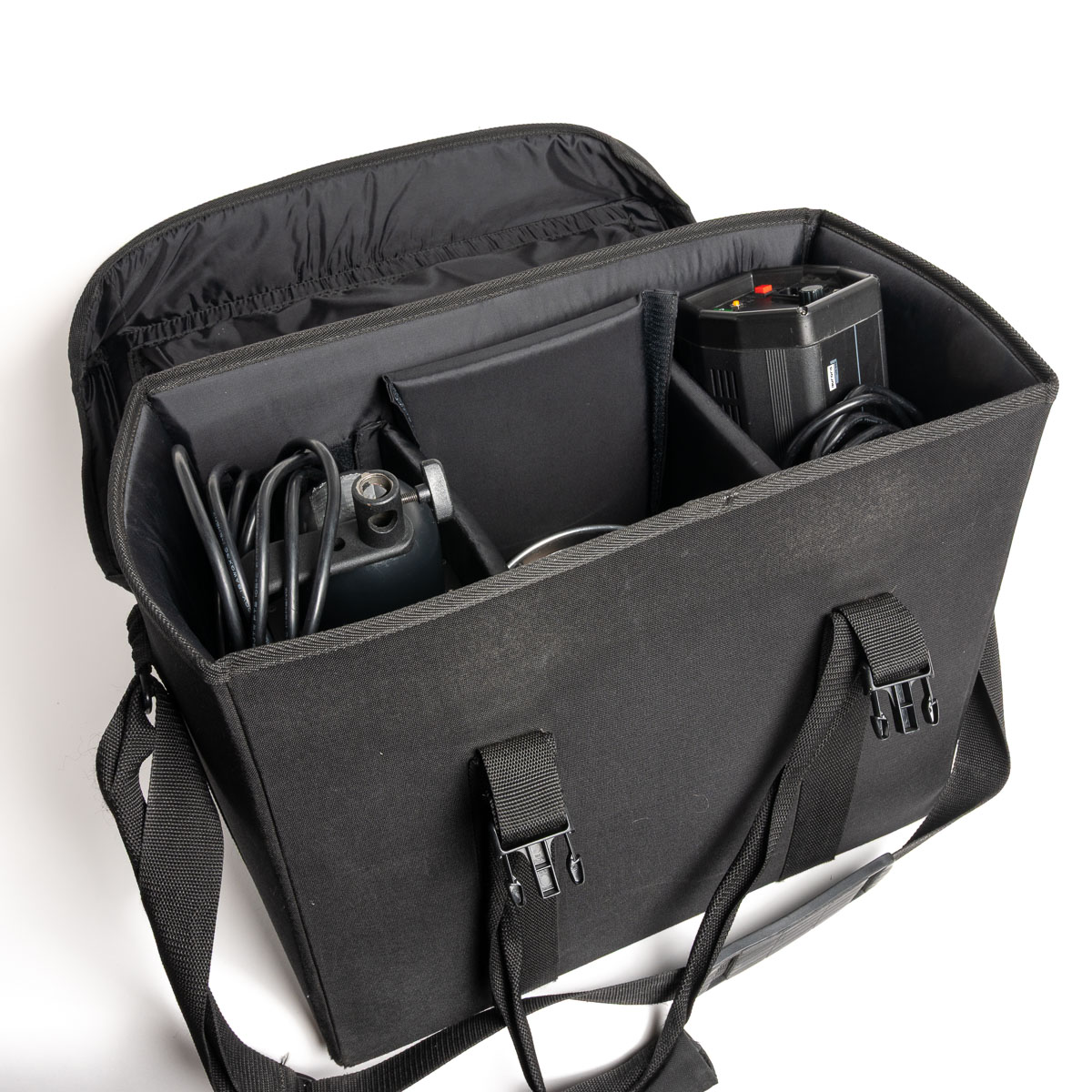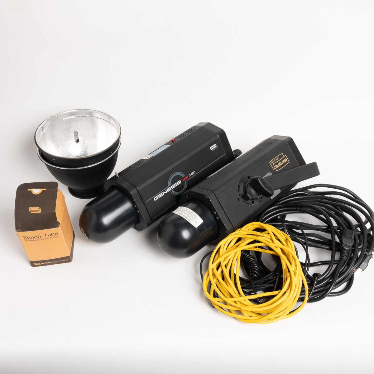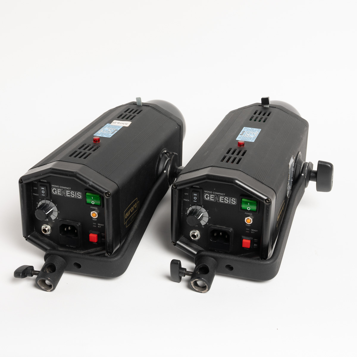 Includes: 2 heads with covers, 2 reflectors, extra flash tube, 2 AC cords, 2 sync cords, Cameron case