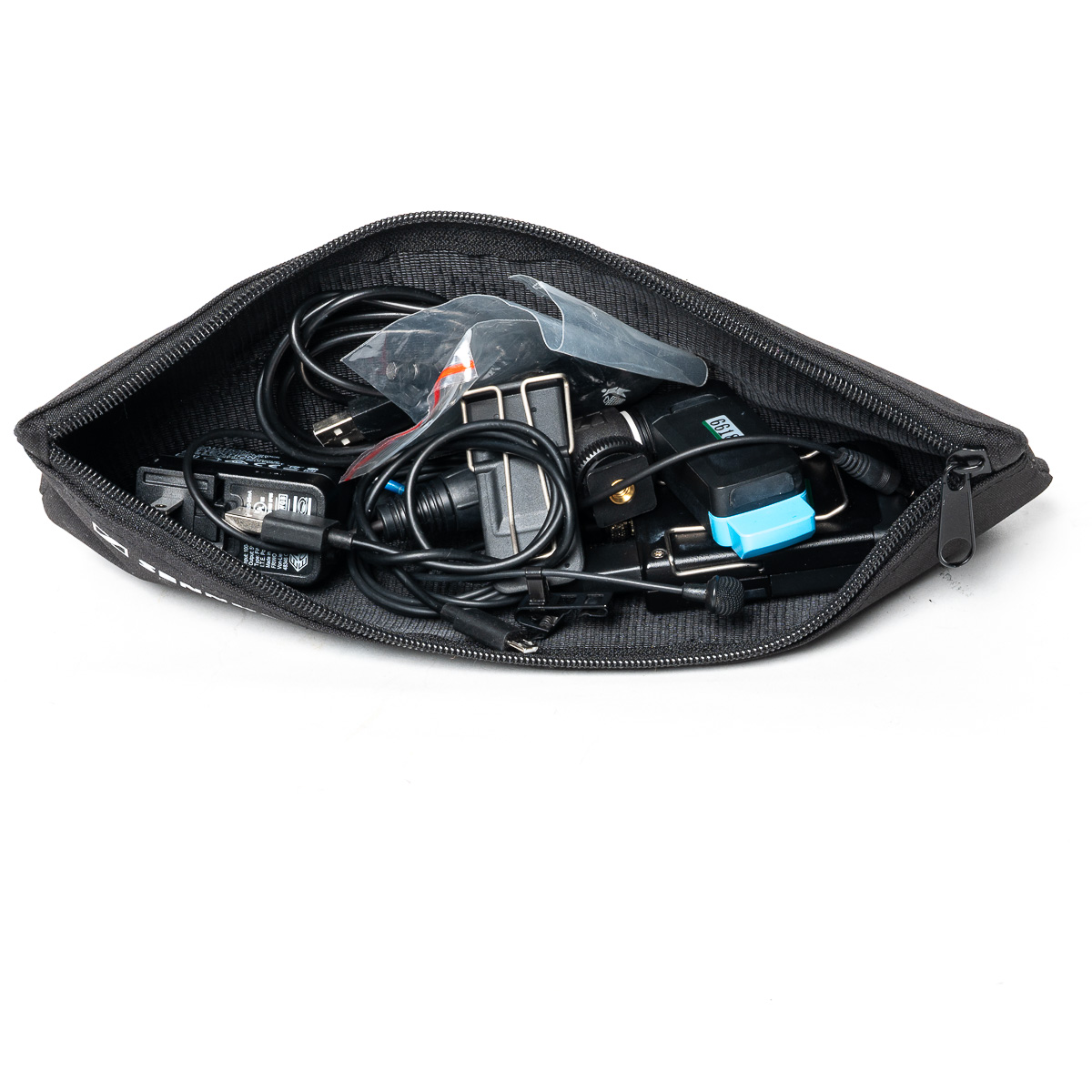 Comes with Wireless transmitter and receiver, MKE2 mic, windscreen, 2-charging cables, AC adapter, XLR to 3.5 jack